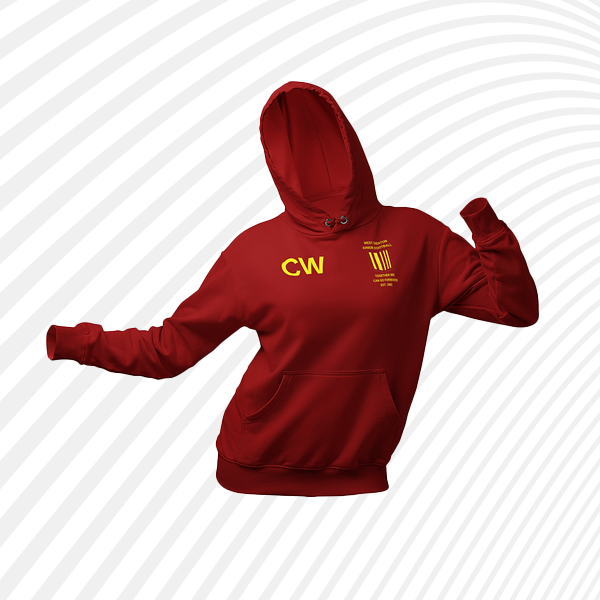 Ruby Crew hoodie. WDFC Crest on left chest, optional initials on right chest.